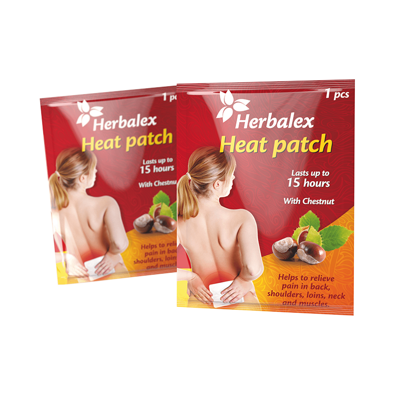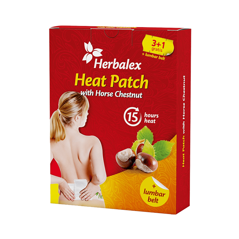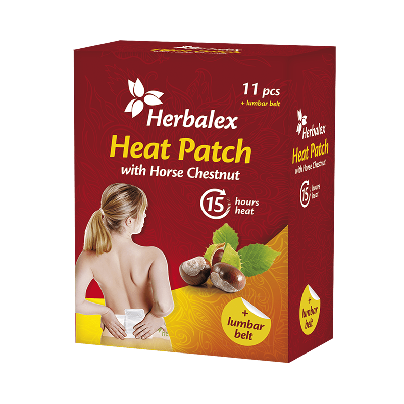 Herbalex varma plåster med kastanj ger en känsla av lättnad och uppvärmning av huden i området med ansträngd rygg, axlar, höfter eller muskler. Detta beror på den torra värmen, som sedan länge är känd för sina välgörande effekter på rörelseapparaten. Efter att plåstret tagits ur sin skyddande (sälj)förpackning börjar de aktiva substanserna i kudden att reagera med syre, vilket gör att plåstret värms upp. Den värmande effekten känns på målområdet i upp till 15 timmar. Herbalex värmeplåster med kastanj ger en mer fullständig lindring tack vare innehållet av aescin och aesculin.